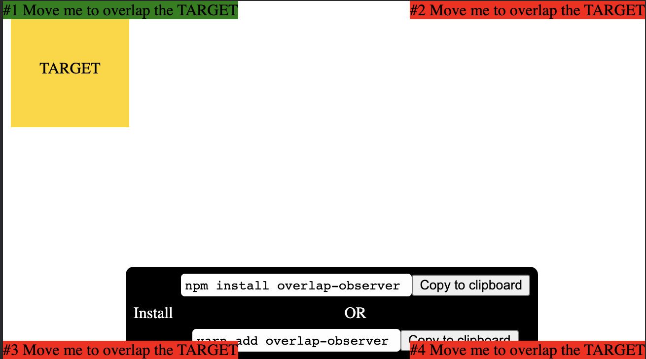 A simple class utility that can run specific javascript on elements overlap or non-overlap